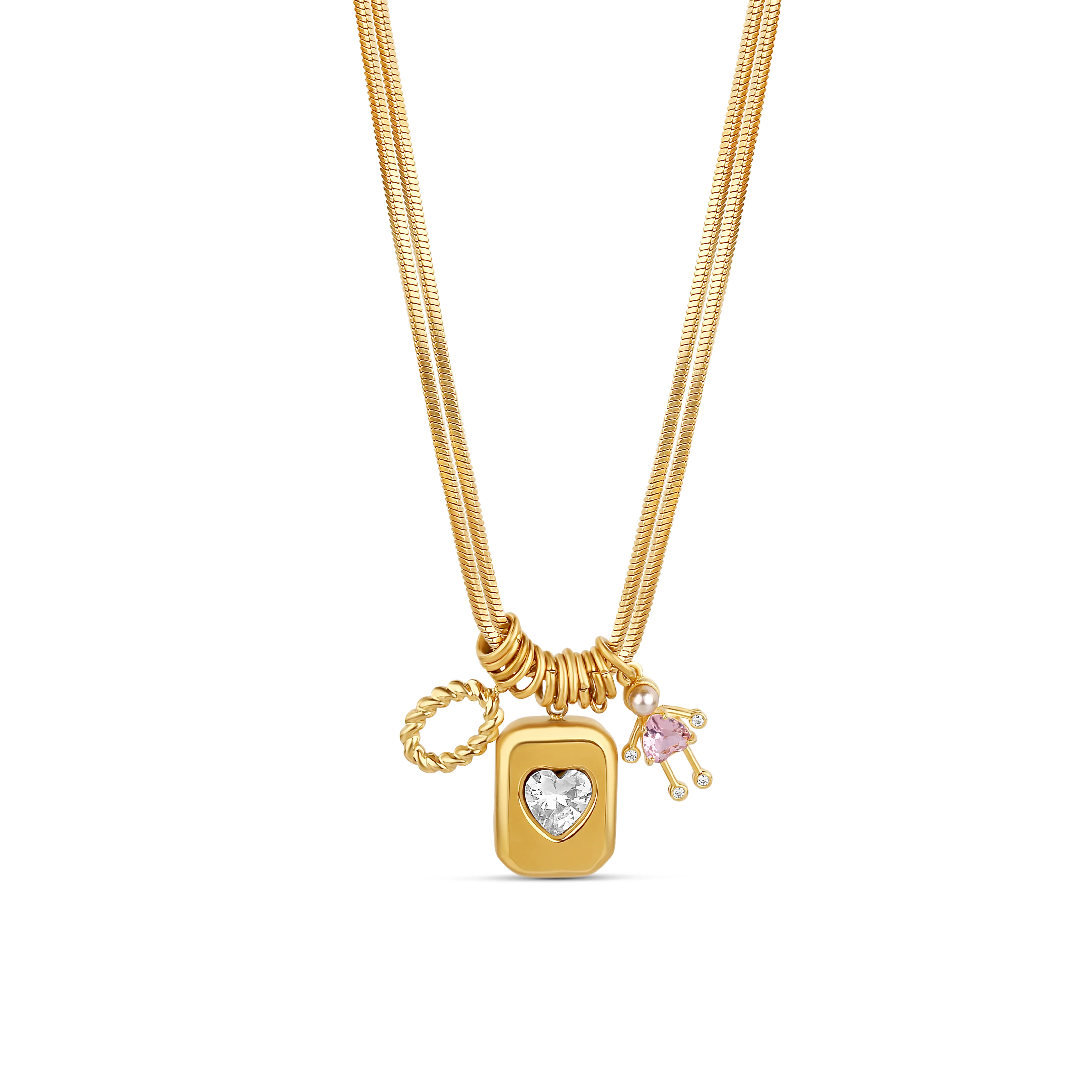 Elevate your jewelry game with our customizable gold-tone necklace, a perfect blend of elegance and personal expression. This stunning piece features a sleek, modern design with a sparkling heart-shaped crystal at its center, offering a touch of glamour to any look.